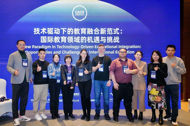 在由北外网络教育学院作为承办方之一的“技术驱动下的教育融合新范式:国际教育领域的机遇与挑战”论坛中,北外网络教育学院院长唐锦兰、副教授张帅、博士屠希亮及国际商学院教授牛华勇分享了学校以技术赋能国际教育、教师发展、中外合作办学和来华留学的深入思考与生动实践。来自澳大利亚沃隆港大学、清华大学、西交利物浦大学、同济大学、武汉大学等单位的近80名专家学者参与论坛。
