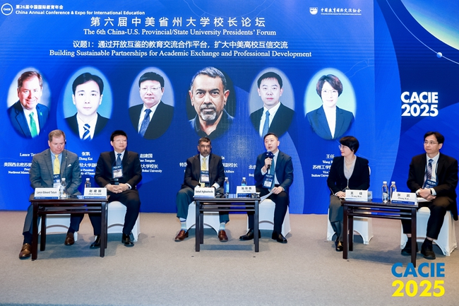 10月29日,第26届中国国际教育年会在北京开幕。北京外国语大学党委常委、副校长刘欣路出席“第六届中美省州大学校长论坛”并发言,同与会教育管理者、高校校长共同分享推动中美合作的经验与感受,展望中美教育的未来发展。本届年会,北外承办了“技术驱动下的教育融合新范式:国际教育领域的机遇与挑战”“教育与可持续发展国际研讨会”等两个平行论坛。10月30日,北外日语学院院长、北京日本学研究中心主任周异夫受邀参加“数字化背景下日语+专业人才培养探究新范式”论坛并担任主讲嘉宾,国际商学院院务委员兼出国留学部主任章严平受邀参加“英语测评赋能多元教育的国际化变革”论坛。