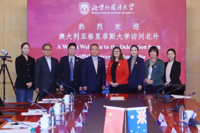 澳大利亚格里菲斯大学营销总监(大中华区)张丹,北外英语学院副院长彭萍、澳大利亚研究中心主任李建军、国际交流与合作处副处长马仲武等参加会见。