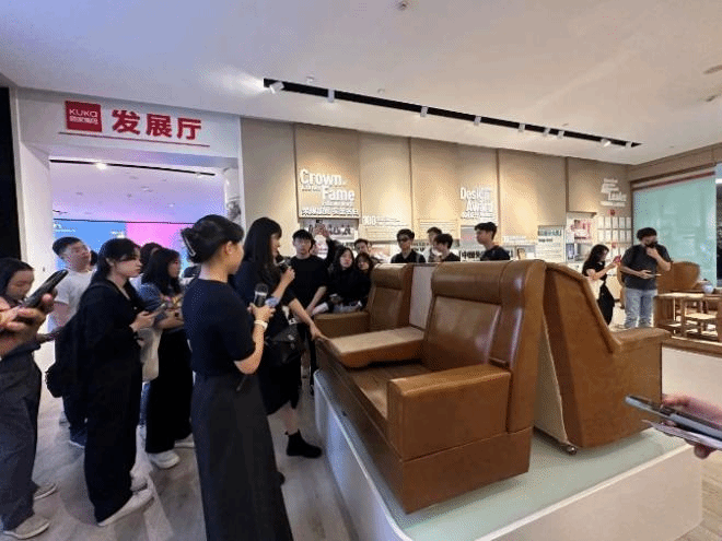 在顾家家居全球总部的导览下,同学们了解了集团40多年的发展历史。在参观过程中,同学们看到了顾家家居的生产线及各种新型的家居产品。他们对顾家家居精湛的工艺、独特的设计理念和严格的品质把控赞不绝口。特别是顾家家居对环保和健康的关注,让同学们感受到了中国家具制造业的人性化和现代化。